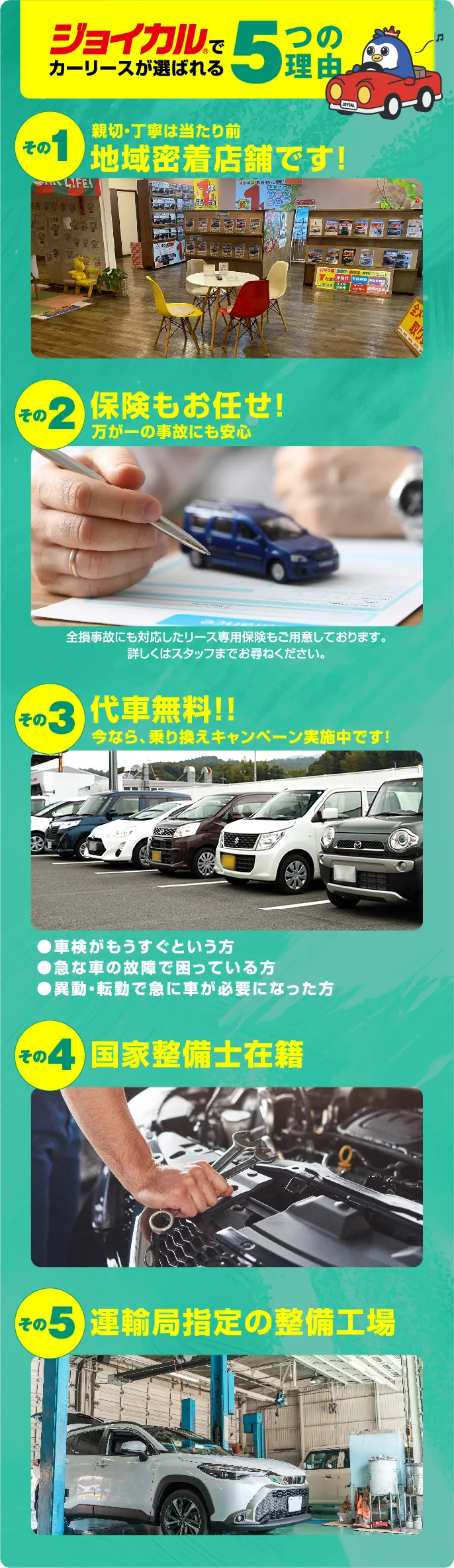 常に新車なので故障の心配がありませんし、急なライフスタイルの変化にも対応が可能です。